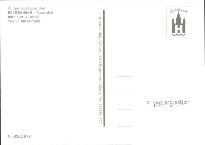 72551262 Eltville Rhein Winzerhaus Rauenthal postalisch nicht gelaufen Erhaltung siehe scans [LiesaD40] KatCode: 11110006439003