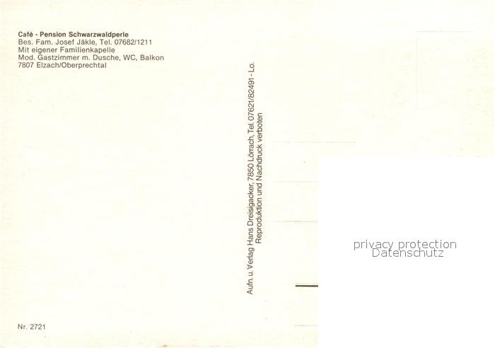 72959763 Elzach Cafe Schwarzwaldperle postalisch nicht gelaufen Erhaltung siehe scans [NatalD47] KatCode: 11110008316010