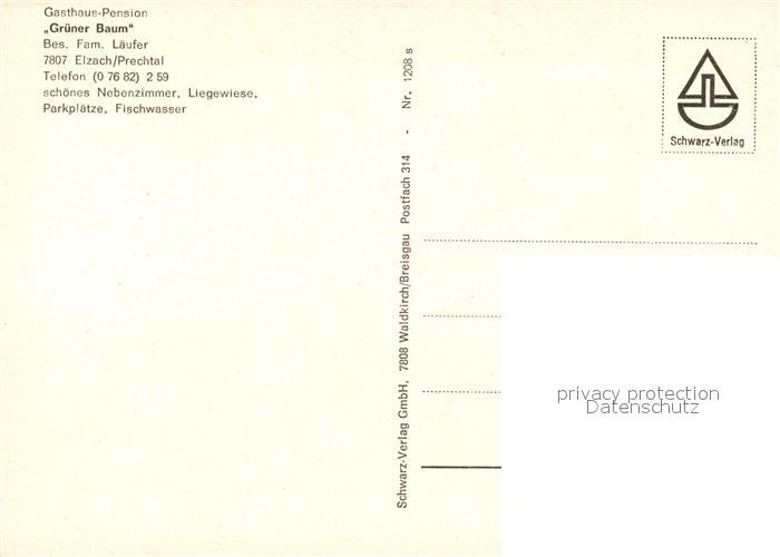 73608936 Elzach Gasthaus Pension Gruener Baum postalisch nicht gelaufen Erhaltung siehe scans [WerneD78] KatCode: 11110008316010