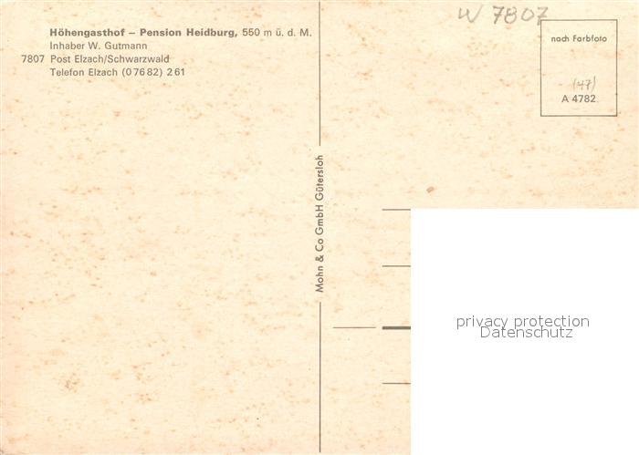 72942660 Elzach H?hengasthof Pension Heidburg postalisch nicht gelaufen Erhaltung siehe scans [LiesaD40] KatCode: 11110008316010