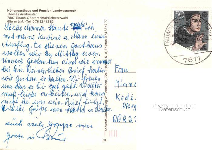 72673039 alte Postkarte Elzach Hoehengasthaus Landwassereck postalisch gelaufen Erhaltung siehe scans [AndreD76] KatCode: 11110008316010
