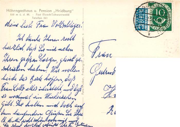 73872490 alte Postkarte Elzach Hoehengasthaus Pension Heidburg postalisch gelaufen Erhaltung siehe scans [FriedD77] KatCode: 11110008316010