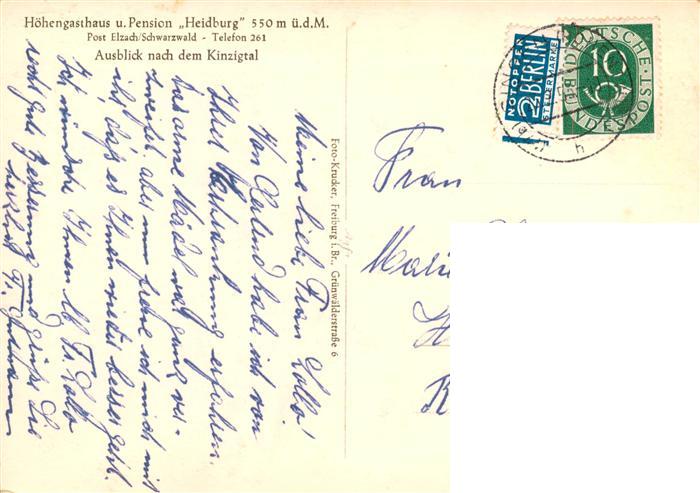 73887985 alte Postkarte Elzach Hoehengasthaus Pension Heidburg postalisch gelaufen Erhaltung siehe scans [WerneD78] KatCode: 11110008316010