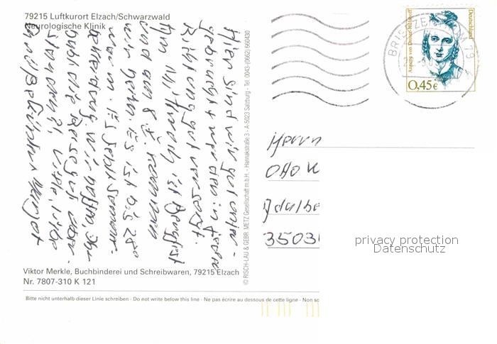 72798726 alte Postkarte Elzach Neurologische Klinik Luftkurort Schwarzwald postalisch gelaufen Erhaltung siehe scans [FriedD77] KatCode: 11110008316010