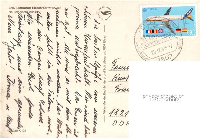 73755057 alte Postkarte Elzach Neurologische Klinik postalisch gelaufen Erhaltung siehe scans [FriedD77] KatCode: 11110008316010