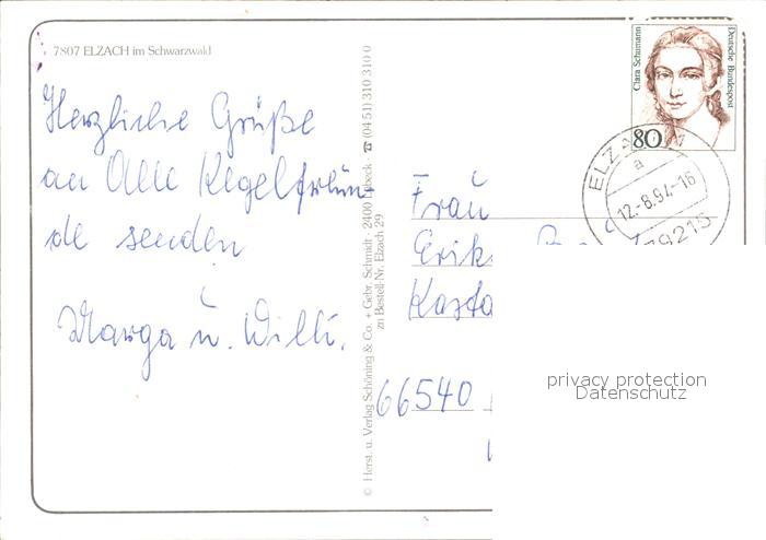 72097348 alte Postkarte Elzach Panorama Teilansicht Kirche Dorfmotive postalisch gelaufen Erhaltung siehe scans KatCode: 11110008316010