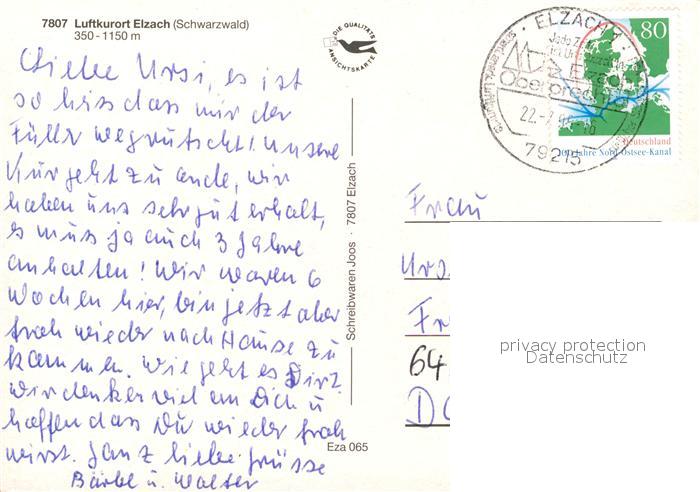 73214626 alte Postkarte Elzach Rathaus Haus des Gastes Neun Linden Kapelle Klinik Schuttigbrunnen Chronik postalisch gelaufen Erhaltung siehe scans [FriedD77] KatCode: 11110008316010
