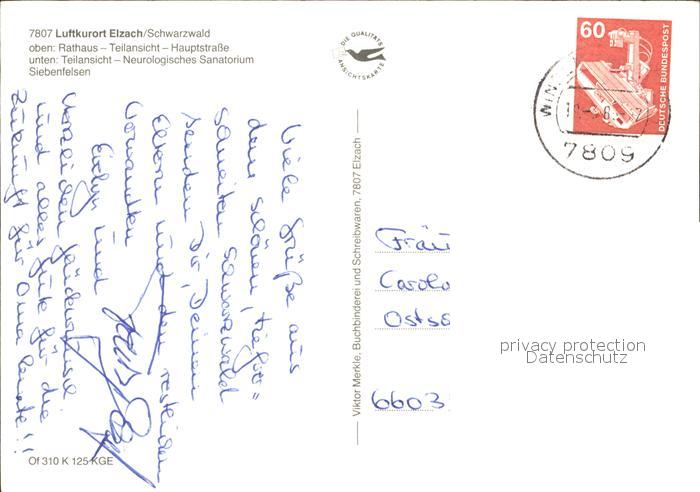 72097346 alte Postkarte Elzach Rathaus Teilansicht Hauptstr Neurol Sanatorium Siebenfelsen postalisch gelaufen Erhaltung siehe scans KatCode: 11110008316010