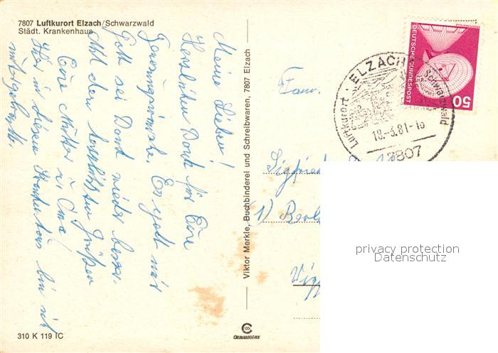 73173753 alte Postkarte Elzach Staedtisches Krankenhaus postalisch gelaufen Erhaltung siehe scans [LiesaD40] KatCode: 11110008316010