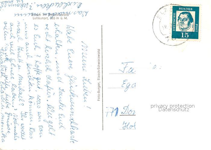73318516 alte Postkarte Elzach Teilansichten Luftkurort im Schwarzwald Wappen Distel Trachten postalisch gelaufen Erhaltung siehe scans [FriedD77] KatCode: 11110008316010