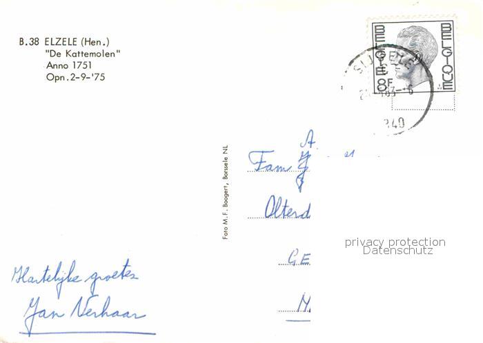 72627579 carte postale Elzele De Kattemolen anno 1751 Windmuehle postalisch gelaufen Erhaltung siehe scans [FriedD77] KatCode: 11070051002767