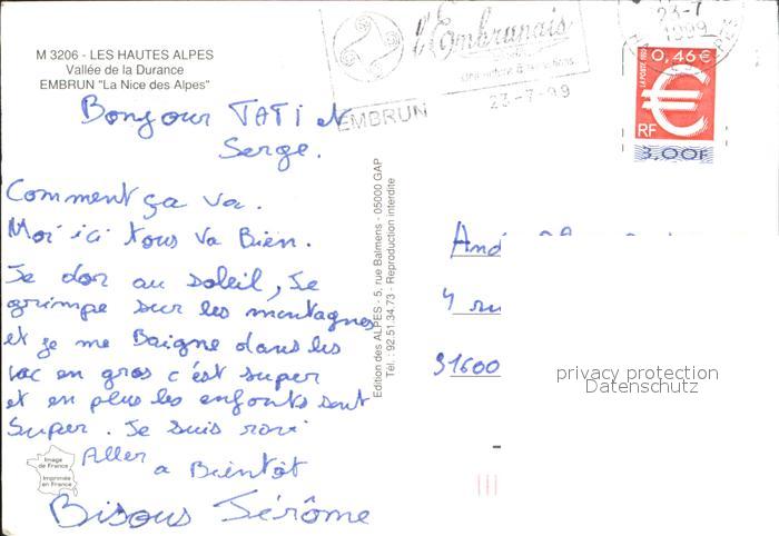 12073318 carte postale Embrun Nice Alpes Serre Poncon postalisch gelaufen Erhaltung siehe scans KatCode: 11170005205046