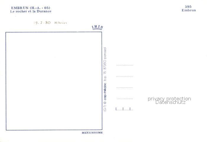 13267828 Embrun Rocher Durance postalisch nicht gelaufen Erhaltung siehe scans [PaolaD17] KatCode: 11170005205046