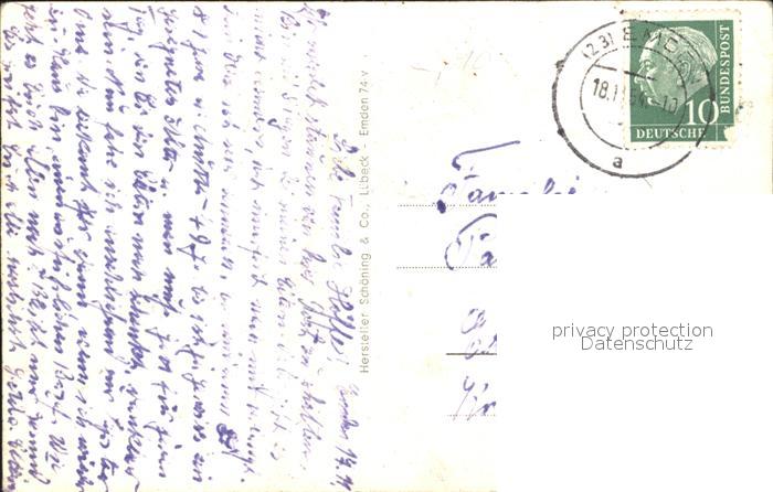 72357414 alte Postkarte Emden Ostfriesland Aussenhafen Neuer hafen Mole Rathaus mit Delft Muehle am Hinter Tief postalisch gelaufen Erhaltung siehe scans KatCode: 11110003402000