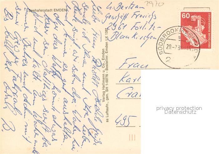 73704894 alte Postkarte Emden Ostfriesland Fliegeraufnahme postalisch gelaufen Erhaltung siehe scans [WerneD78] KatCode: 11110003402000