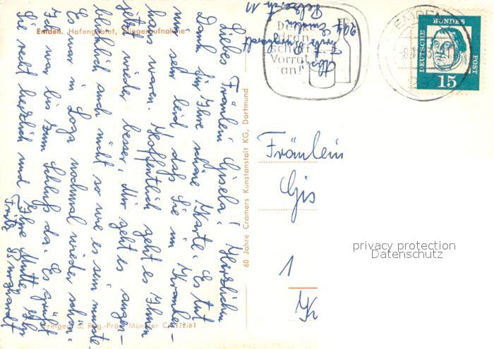 73725814 alte Postkarte Emden Ostfriesland Fliegeraufnahme Hafengebiet postalisch gelaufen Erhaltung siehe scans [LiesaD40] KatCode: 11110003402000