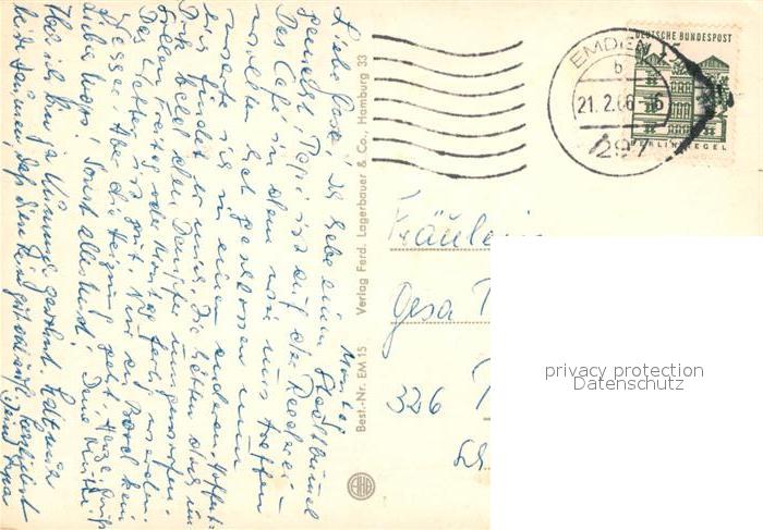 73093704 alte Postkarte Emden Ostfriesland Hafen Faehre postalisch gelaufen Erhaltung siehe scans [NatalD47] KatCode: 11110003402000