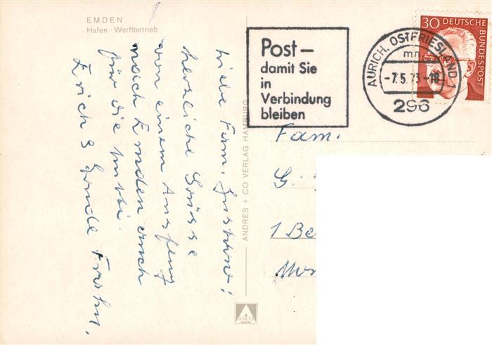 73905242 alte Postkarte Emden Ostfriesland Hafen Werftbetrieb postalisch gelaufen Erhaltung siehe scans [WerneD78] KatCode: 11110003402000
