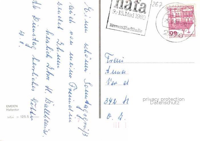 72687470 alte Postkarte Emden Ostfriesland Hafentor postalisch gelaufen Erhaltung siehe scans [FriedD77] KatCode: 11110003402000