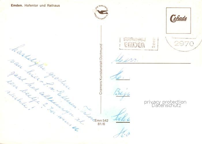 73308181 alte Postkarte Emden Ostfriesland Hafentor Rathaus postalisch gelaufen Erhaltung siehe scans [LiesaD40] KatCode: 11110003402000