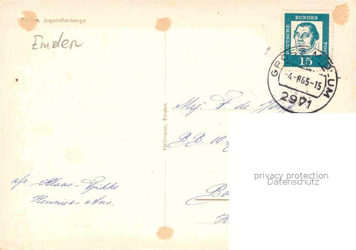 72863743 alte Postkarte Emden Ostfriesland Jugendherberge postalisch gelaufen Erhaltung siehe scans [FriedD77] KatCode: 11110003402000