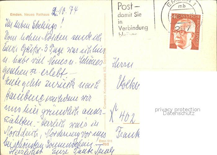 72456259 alte Postkarte Emden Ostfriesland Neues Rathaus postalisch gelaufen Erhaltung siehe scans KatCode: 11110003402000