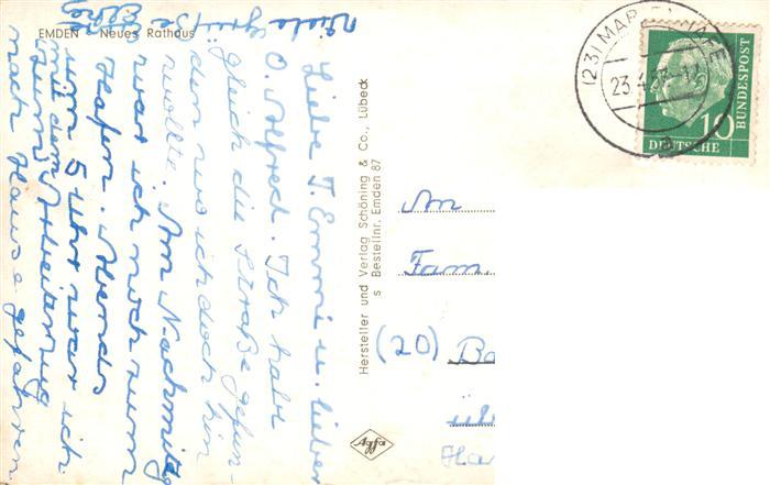 73863727 alte Postkarte Emden Ostfriesland Neues Rathaus postalisch gelaufen Erhaltung siehe scans [FriedD77] KatCode: 11110003402000