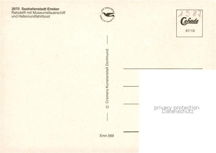72933978 alte Postkarte Emden Ostfriesland Ratsdelft Museumsfeuerschiff Hafenrundgahrtboot postalisch gelaufen Erhaltung siehe scans [LiesaD40] KatCode: 11110003402000