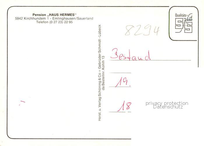 73780353 Emlinghausen Pension Haus Hermes Gastraum postalisch nicht gelaufen Erhaltung siehe scans [FriedD77] KatCode: 11110005966016