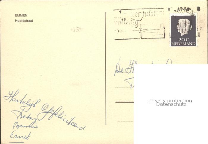 old postcard Emmen Netherlands Hoofstraat postalisch gelaufen Erhaltung siehe scans