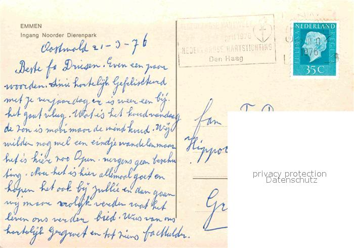 old postcard Emmen Netherlands Ingang Noorder Dierenpark postalisch gelaufen Erhaltung siehe scans [WerneD78]