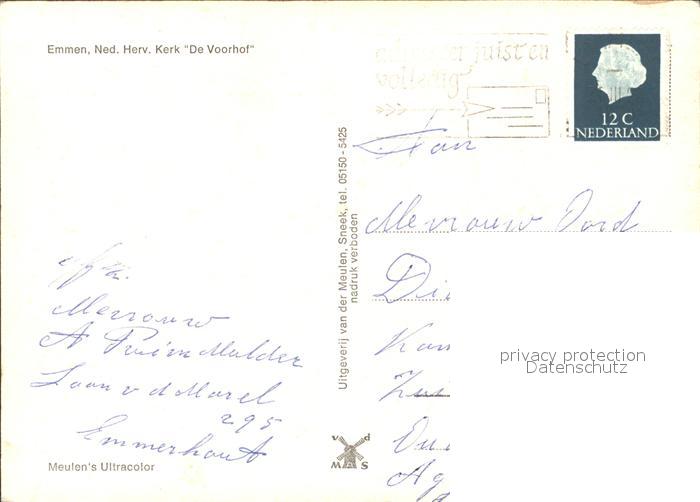 old postcard Emmen Netherlands Kerk De Voorhof postalisch gelaufen Erhaltung siehe scans