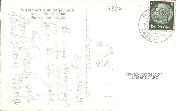 31734593 alte Postkarte Emmendingen Gasthaus zum Jaegerhof Karl Engler postalisch gelaufen Erhaltung siehe scans KatCode: 11110008316011