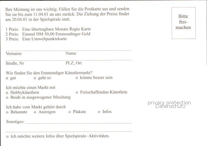 71913470 Emmendingen Plakat Emmendinger Kuenstler Markt am Markgrafenschloss postalisch nicht gelaufen Werbekarte (keine Postkarte) Erhaltung siehe scans KatCode: 11110008316011