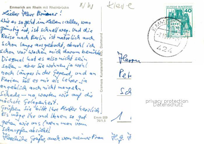 72919364 alte Postkarte Emmerich Rhein Rheinbruecke postalisch gelaufen Erhaltung siehe scans [NatalD47] KatCode: 11110005154008