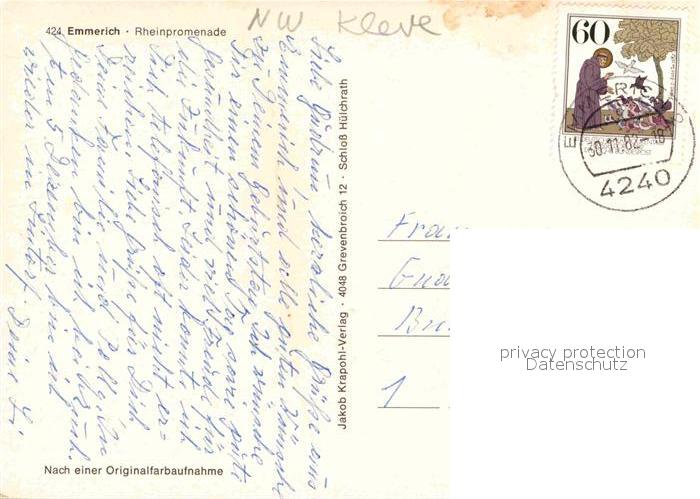 72919371 alte Postkarte Emmerich Rhein Rheinpromenade postalisch gelaufen Erhaltung siehe scans [NatalD47] KatCode: 11110005154008