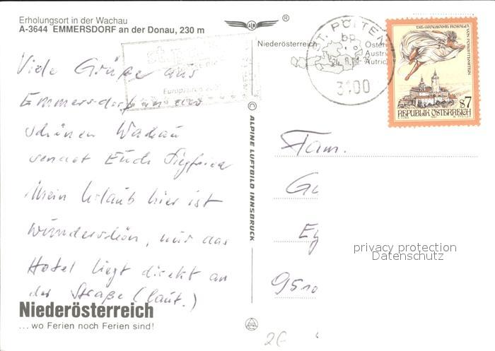 72080014 alte Postkarte Emmersdorf Wachau Fliegeraufnahme Donau postalisch gelaufen Erhaltung siehe scans KatCode: 11390