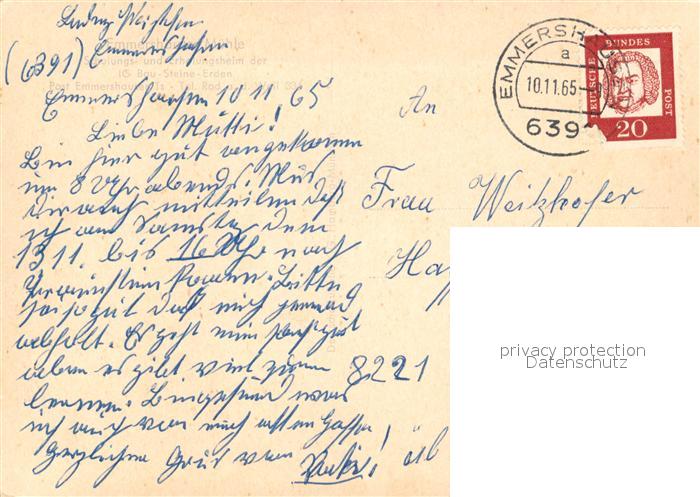 73164274 alte Postkarte Emmershausen Emmershaeuser Muehle Schulungs- und Erholungsheim der IG Bau Steine Erden postalisch gelaufen Erhaltung siehe scans [FriedD77] KatCode: 11110006434013