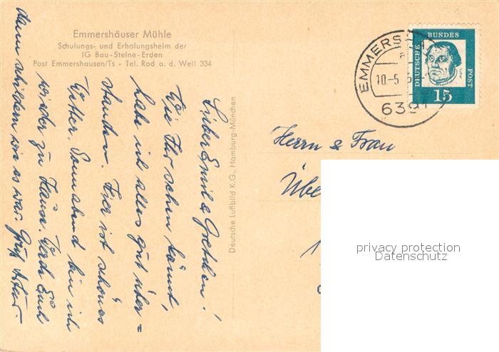 73673557 alte Postkarte Emmershausen Emmershaeuser Muehle Schulungs- und Erholungsheim der IG Bau Steine Erden postalisch gelaufen Erhaltung siehe scans [FriedD77] KatCode: 11110006434013