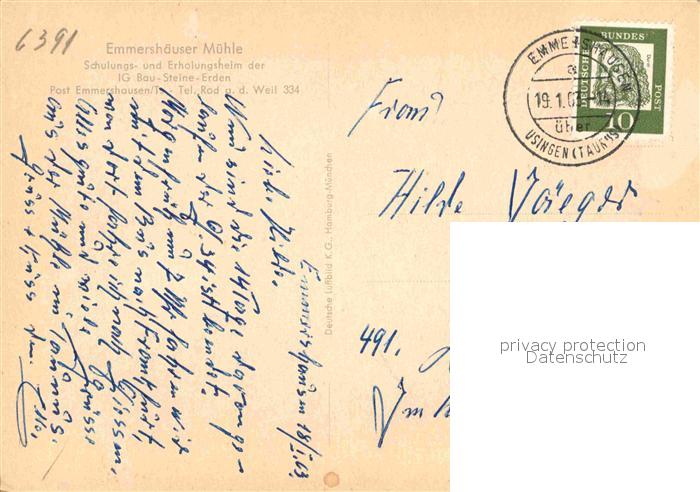 72800819 alte Postkarte Emmershausen Emmershaeuser Muehle Schulungsheim Erholungsheim der IG Bau Steine Erden postalisch gelaufen Erhaltung siehe scans [FriedD77] KatCode: 11110006434013
