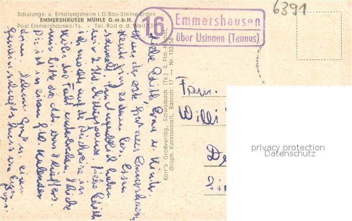73691914 alte Postkarte Emmershausen Emmershaeuser Muehle postalisch gelaufen Erhaltung siehe scans [WerneD78] KatCode: 11110006434013