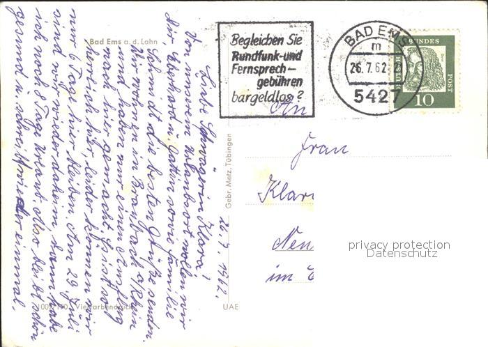 72370347 alte Postkarte Ems Bad Kurpark Ems Wappen postalisch gelaufen Erhaltung siehe scans KatCode: 11110007141006