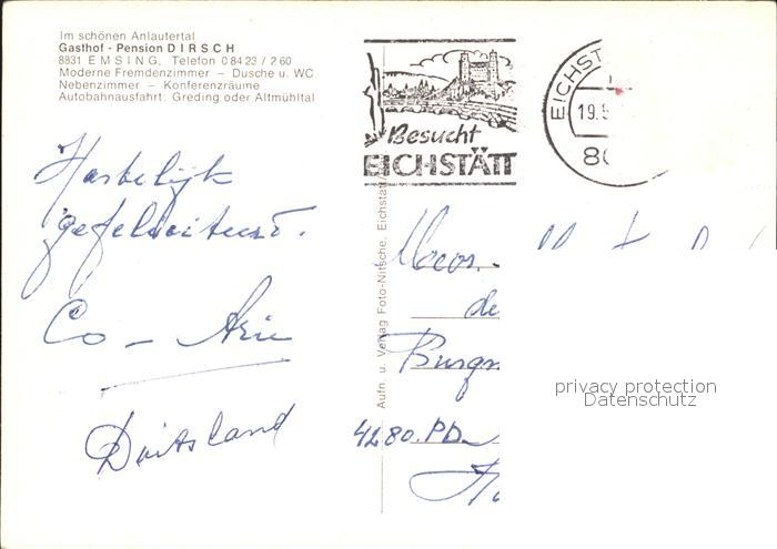 72131391 alte Postkarte Emsing Titting Oberbayern Gasthaus Pension Dirsch postalisch gelaufen Erhaltung siehe scans KatCode: 11110009176164