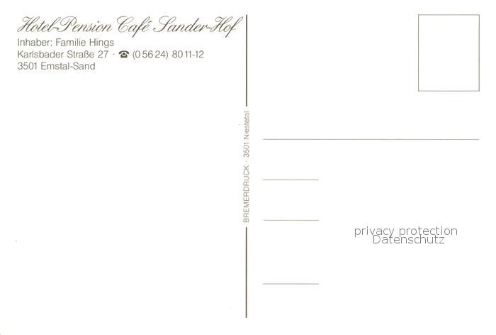 73767607 Emstal Bad Cafe Sander Hof postalisch nicht gelaufen Erhaltung siehe scans [FriedD77] KatCode: 11110006633006