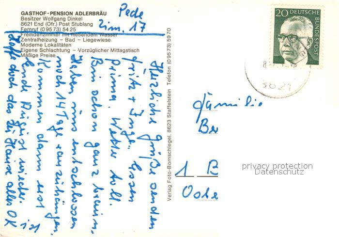 73568868 alte Postkarte End Gasthof Pension Adlerbraeu Kapelle Landschaftspanorama postalisch gelaufen Erhaltung siehe scans [FriedD77] KatCode: 11110009478165