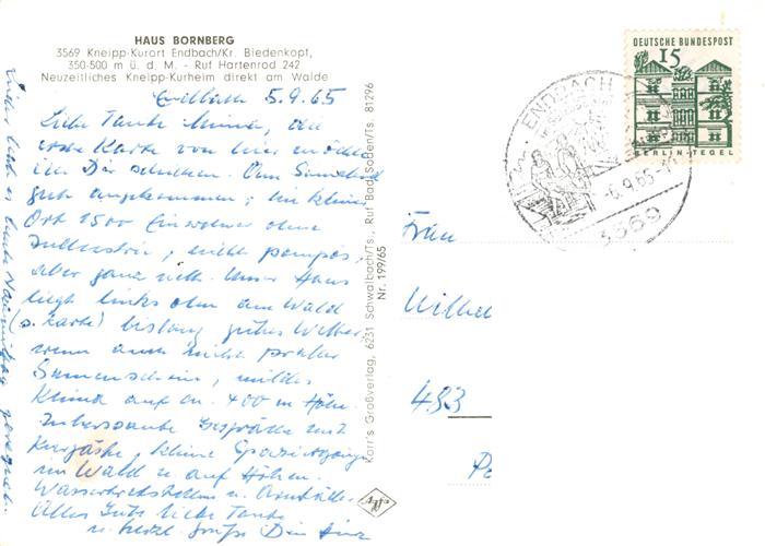 73908789 alte Postkarte Endbach Bad Kneipp Kurheim Haus Bornberg Panorama Gastraum postalisch gelaufen Erhaltung siehe scans [FriedD77] KatCode: 11110006534003