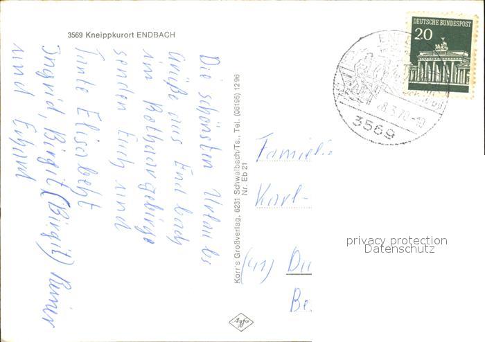 72433553 alte Postkarte Endbach Bad Teilansichten Badehaus Koch Bergland Klinik postalisch gelaufen Erhaltung siehe scans KatCode: 11110006534003