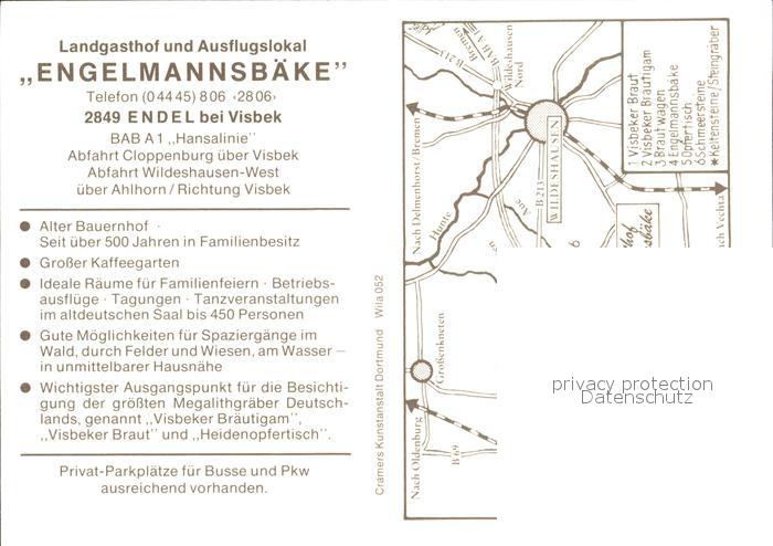 72263236 Endel Vechta Landgasthof Engelmannsbaeke Kaffeegarten Kleiner Saal postalisch nicht gelaufen Werbekarte (keine Postkarte) Erhaltung siehe scans KatCode: 11110003460010