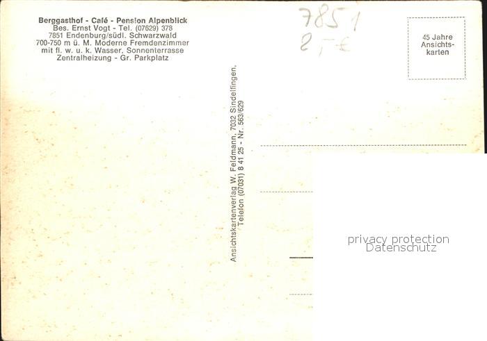 72417452 Endenburg Gasthaus Cafe Pension Alpenblick postalisch nicht gelaufen Erhaltung siehe scans KatCode: 11110008336084