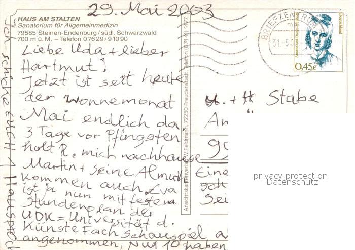 73653958 alte Postkarte Endenburg Haus am Stalten Sanatorium fuer Allgemeinmedizin im Schwarzwald postalisch gelaufen Erhaltung siehe scans [FriedD77] KatCode: 11110008336084
